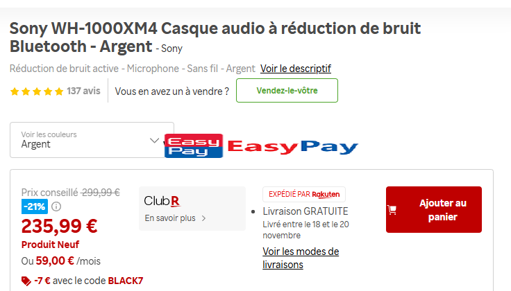 - 点击 “Ajouter au panier” 将商品加入购物车。